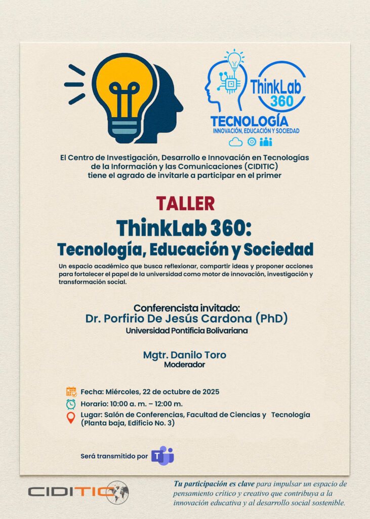 agosto 29, 2025 agosto 29, 2025Conversatorio: Repensando el futuro con tecnología, pensamiento computacional e inteligencia artificial: retos y perspectivas para la educación